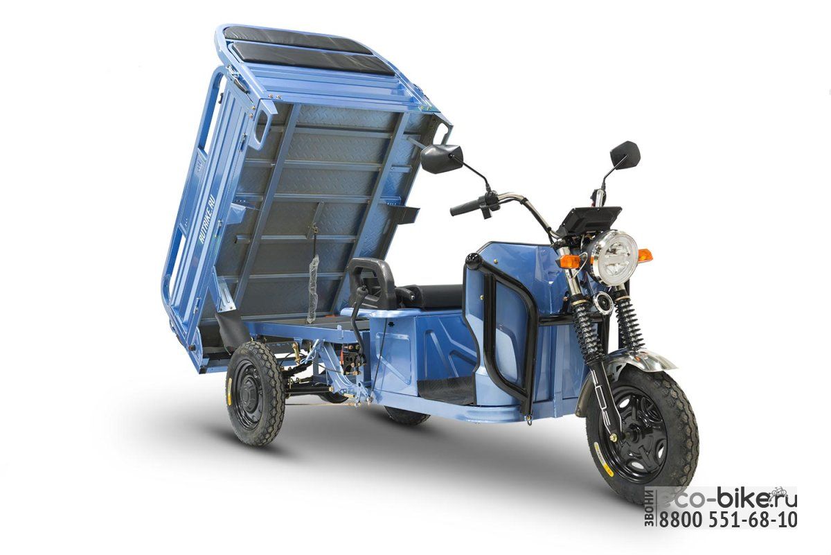 Трицикл оснащён прочным стальным грузовым отсеком габаритами 1500 x 1000 x 300 мм (Д х Ш х В).