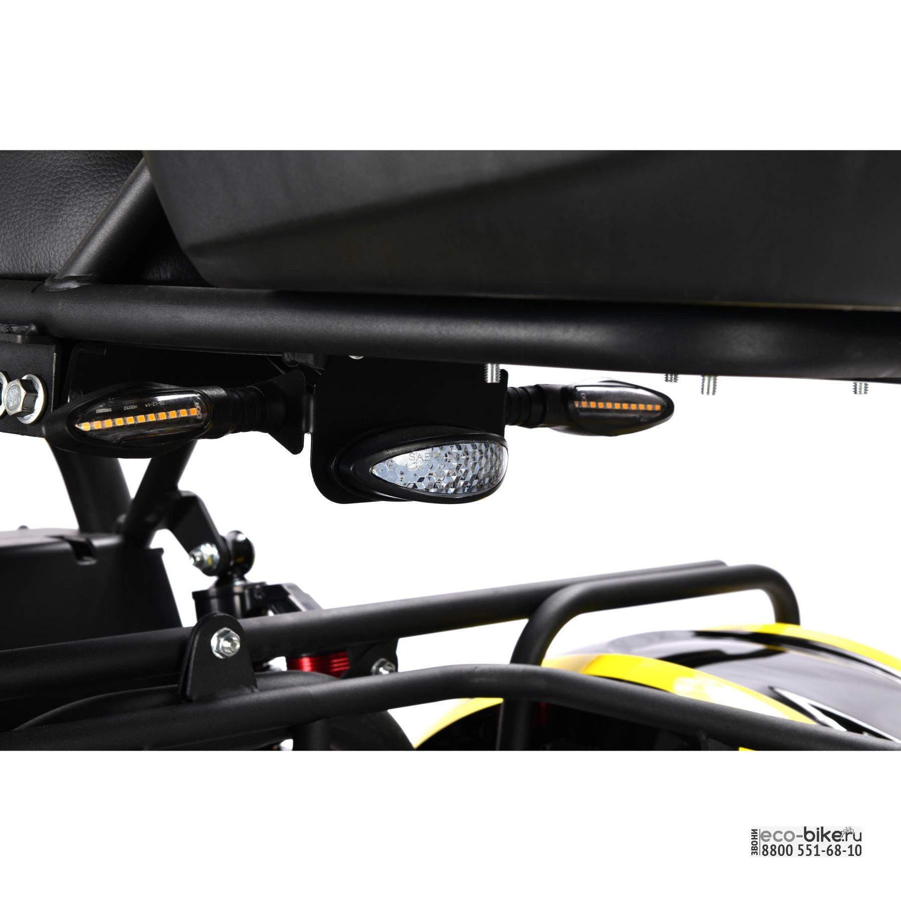 • оборудован одной мощной фарой, двумя стробоскопами, задними ходовыми огнями сертификации ECC и поворотниками с ярким свечением